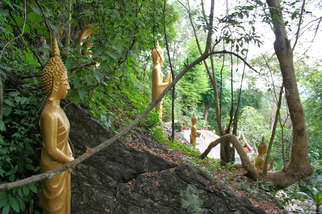 En descendant du Mont Phousi du côté de la rivière Nam Khan, on découvre un temple, le That Chomsi et ses belles statues de Bouddha entourées de lianes. Le bouddha endormi est superbe caché derrière toutes ces fleurs et disposé dans un lieu aussi serein, loin des bruits de la ville.